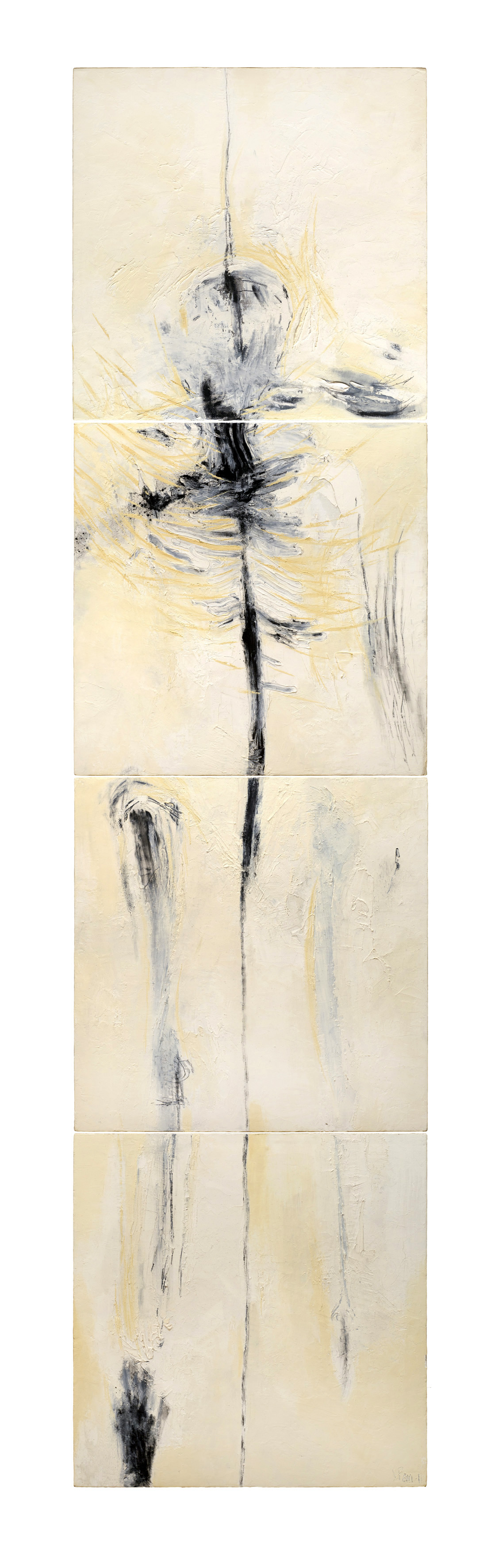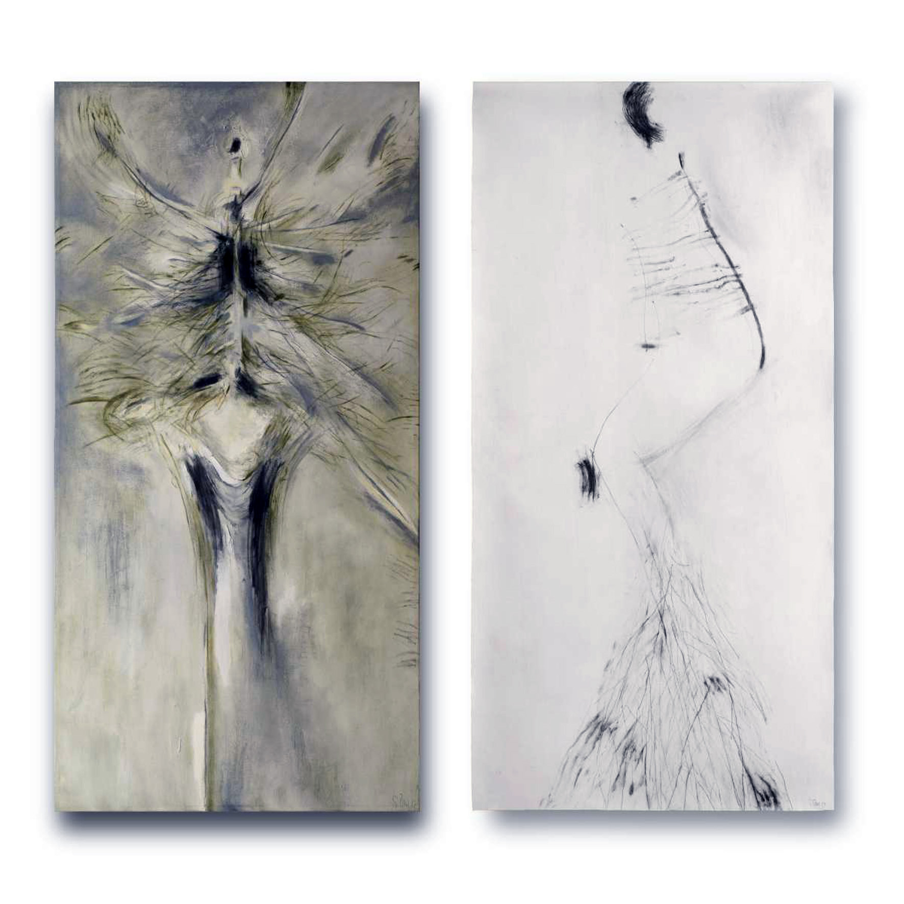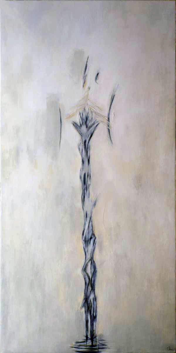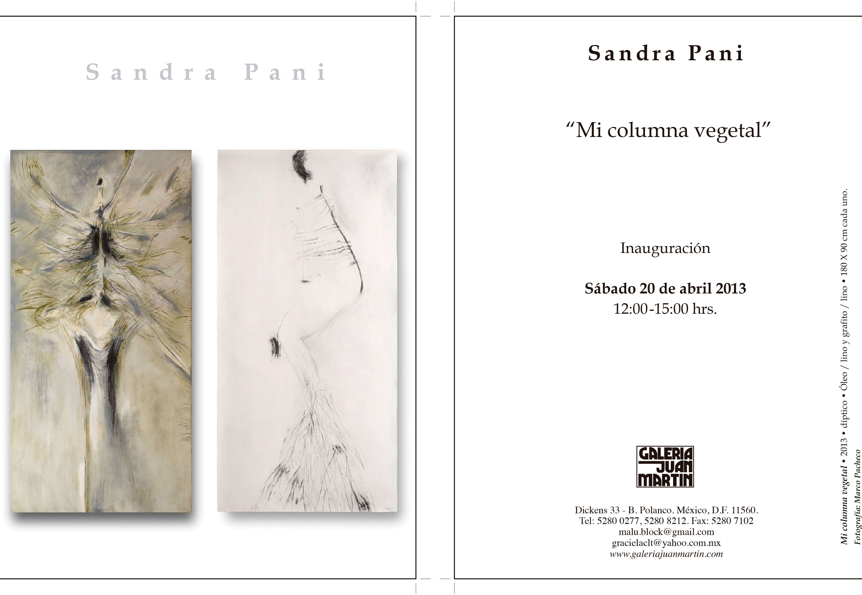 Una pintura hecha de pintura, pues a partir de una admirable economía de motivos figurativos, logra un deslumbrante abanico de imágenes, llenas de poesía. Cuerpos, trazos, residuos de una vida simple embalsamados por un halo gris de polvo viejo, endurecido. Un universo de sensaciones imprevistas que da vida a un mundo de arte único de extraña belleza. Pani domina ese equilibrio difícil en el que no se notan las restas la eliminación de motivos, y se intuye el cuidado con el que se define cada composición. El orden, la mesura, desde una temperatura que se convierte en propia a fuerza de ser asumida y defendida. Ocurre, sin embargo, que el dibujo se presenta más plano, que las líneas se abaten, que una sinuosa ayuda en ocasiones a resolver una imagen (caso del silencioso; casi mínimo, Columna vegetal). De lo anterior podría deducirse que el ejercicio se torna menos apagado, más personal, incluso más drástico, como lo muestra la manera de introducir un plano gris intenso en la parte superior de algunos cuerpos. Pero, con todo, Pani no es, paradójicamente, una colorista. Su obra reciente quiere ser un hábil ejercicio de composición y color, de transformación del color en forma primordial que regula los efectos visuales. Pani entiende que la pintura debe nacer de la memoria ancestral, de los viejos mitos de la humanidad y transformarse en la “presencia de lo sublime”, como decía Mark Rothko. Ese es su ofrecimiento y ésa la propuesta reciente de Sandra Pani.